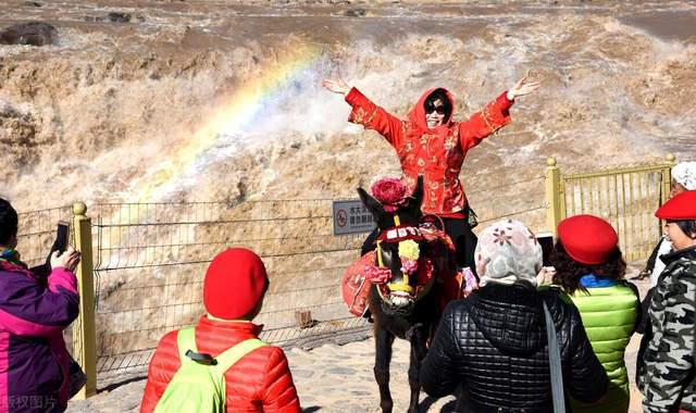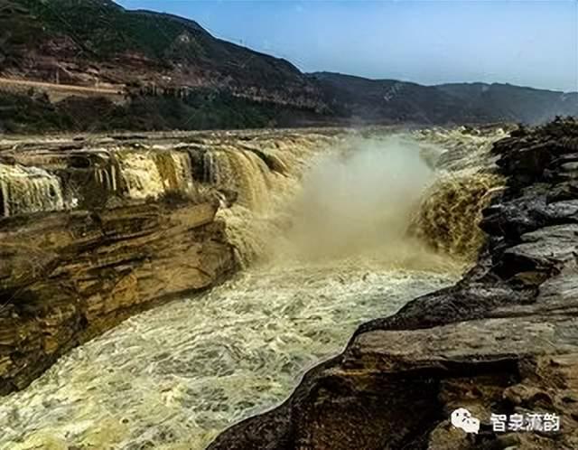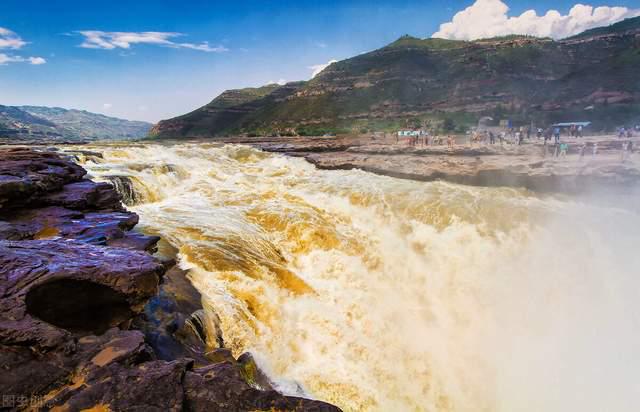 看着远处的黄河水,汹涌地冲过来;观之,尤有雷霆万钧之势,听之,尤有万马齐鸣之奏。河水排在山崖上,形成一道“水雾墙”。