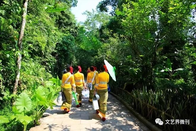 不一会,九龙飞瀑到了,这个九龙聚首的瀑布是森林公园的又一个自然景观,瀑布的流水,清澈悦耳好听;高处飞流而下的瀑水,逸洒洒地注入在崖石脚下的碧潭里,那清澈透亮的好看,让中午日头当照的辐射热退却三尺,让我们这些游客惬意无比,精神异彩丰发,更加鼓足了我们的劲头。离开九龙飞瀑,走在太阳正午高照无云的燥热里,更想感受风的清凉,感受水的清澈。西双版纳是一个多民族的地方,这里主要居住着傣族,爱情族,哈尼族,基诺族,苗族等,而傣族是一个最喜欢水的民族。联想到这里,我不由自主地说:“如果现在过泼水节该多好!”“可以啊!我们现在就去风情园感受傣族的泼水节活动!”江涛忙说道。