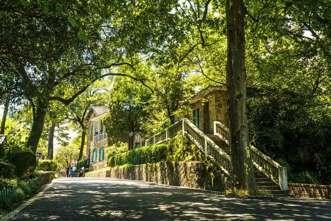 就在你心下疑惑不已的时候,终于到了。山上与庐山相仿佛,随高低起伏的地势,建有大大小小的各式房屋,因为不是旺季,山上很少游人,街道上除了当地人之外,几乎看不到什么游客。莫干山乃天目山余脉,距杭州60公里,在德清县境内,论雄伟不及黄山、泰山;说险峻不如华山、三清山,但山峦峻秀,清泉不竭,绿竹如海,凉风习习,素有“清凉世界”之美誉,以竹、泉、云“三胜”和绿、凉、清、静“四优”的环境闻名遐迩,与北戴河、庐山、鸡公山并称为我国四大避暑胜地。