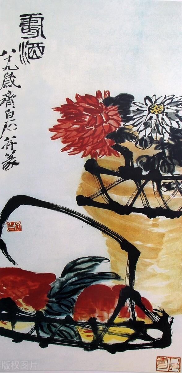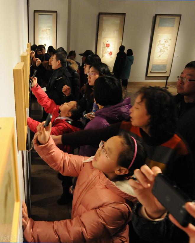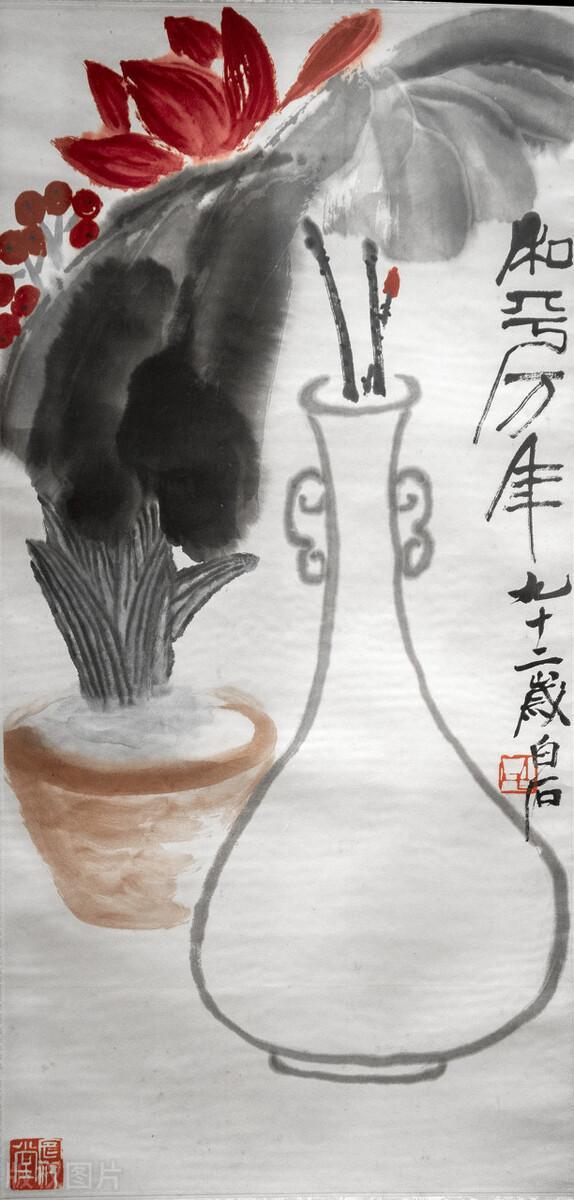 齐白石(1864─1957),原名纯芝,字渭青,后改名璜,字濒生,号白石、白石山翁。湖南湘潭人。近现代中国画大师,世界文化名人。早年曾为木工,后以卖画为生,五十七岁后定居北京。擅画花鸟、虫鱼、山水、人物,衰年变法,笔墨雄浑滋润,色彩浓艳明快,造型简练生动,意境淳厚朴实。所作鱼虾虫蟹,天趣横生。其书工篆隶,取法秦汉碑版,行书饶古拙之趣,篆刻自成一家,亦能诗文。曾任中央美术学院名誉教授、中国美术家协会主席等职。齐白石的作品题材总与其切身生活息息相关,笔墨多见乡村景物,独有的田园风韵折射出他质朴、纯净、高远、豁达的艺术志趣。他三十岁始学画,六十余方成器,从乡土气息到志趣天然,从善于精摹到自成一家,独特的艺术经历成就他率真、老辣、鲜活、苍厚的艺术笔风。前来参观的人络绎不绝,尤以年龄大的人居多,他们或许都是齐白石的粉丝吧。