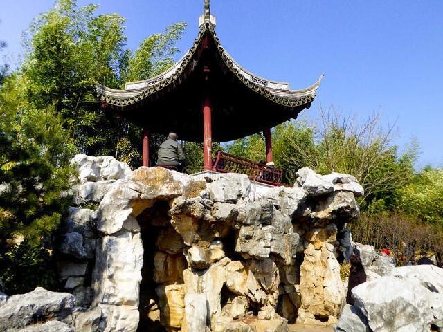 而这“古猗园”自然也颇得其风,其名本取自《诗经》里面“绿竹猗猗”的句子,“猗猗”谓其竹之茂盛。在这里,园和竹真是亲上加亲了。名字听起来就绿意油生,游下去更是竹气盎然。在这个百花凋谢的深秋季节,园中行走,夹道的多是四季长青的绿竹,远看则青绿一篇,近观竹竿挺立、饱满,还能给人一种温润的感觉。顿时想起民间关于“岁寒三友――松、竹、梅”的评说。的确,在寒风凛冽的隆冬季节,“三友行,必有我师”。竹没有松的高俊,没有梅的暗香。松梅自然是百木中的帝后。然而现在尚值深秋,松梅不放,而百木已凋,只有气质朴素的竹伴随在我身边,我才明白古代的文人为何对竹有如此偏爱。苏东坡一生旷达,“可使食无肉,不可居无竹”,宁愿消瘦,也不愿落得俗气。竹林七贤生逢乱世,不求闻达于诸侯,能苟全生命于竹间,弹琴长哮,摆个名士的POSE,即使外人颇感另类,又岂不快哉?如果说松是草木中的丈夫,那么竹就是草木中的君子。