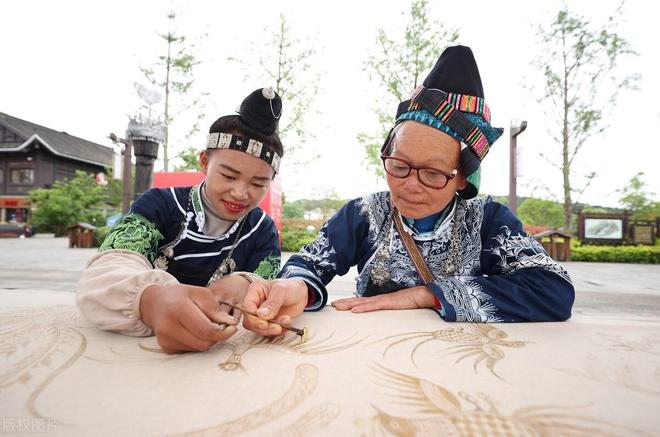 由于住在锦鸡广场的聚福林客栈,锦鸡广场成为我们最熟悉的一个广场,这个广场的设计灵感来自苗族的锦鸡舞。锦鸡舞是苗族芦笙舞中别具一格的传统舞蹈,主要流行于苗族的一个支系-锦鸡苗族,锦鸡苗族通常喜穿锦鸡服饰,分布在丹寨和雷山的一部分地区。在芦笙伴奏下,身着锦鸡服饰的苗族姑娘双脚按芦笙曲调节奏变换出优美姿势,舞者步履轻盈,酷似锦鸡在行乐觅食。锦鸡舞象征凤凰来仪,有吉祥的征兆,体现了苗族妇女祈求民族富足的虔诚场面。锦鸡广场的地面有个用花纹围成的大圆圈,晚上的篝火晚会在圆圈范围举行。地面上的纹样提取自锦鸡旗上的纹路和元素,广场周边的皮鼓和阙楼上同样描绘有锦鸡图案。