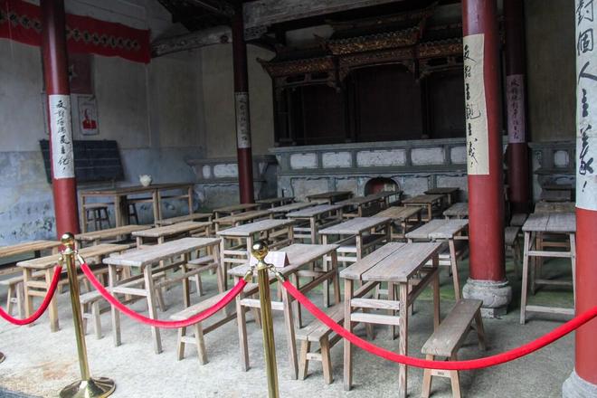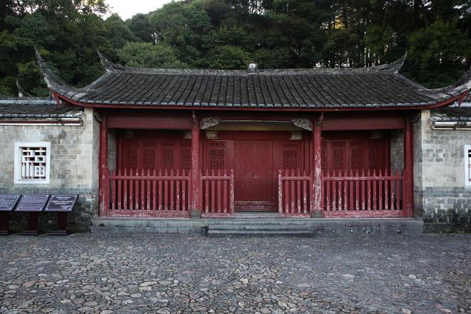 左右两侧为厢房,正厅是古田会议会场,主席台设于左侧。我们走进会址,这是一个宽敞的院子,原是小学生课外活动的场所。会议室就设在课堂里,简陋的课桌,粗拙的条凳,正面墙上挂着“中国共产党工农第四军第九次代表大会”的大红横幅,下有一幅锤子、镰刀的红旗,再下面张贴着马克思、列宁的画像。同伴拿出相机,纷纷拍下这一庄严的场景……