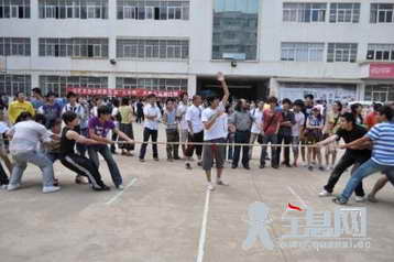 盼星星,盼月亮,终于等到了拔河比赛的时间!首先是从一年级的开始,然后是二年级.....终于轮到我们班啦!只见选手们个个精神抖数,一点紧 张的感觉都没有。他们有顺序的走向“战场”,接着就开始做起了操:扭扭屁股,伸伸懒腰,甩甩头发,踢踢脚。这一系列滑稽的动作,逗的周围的同学捧腹大笑, 使气氛更加活跃了起来。