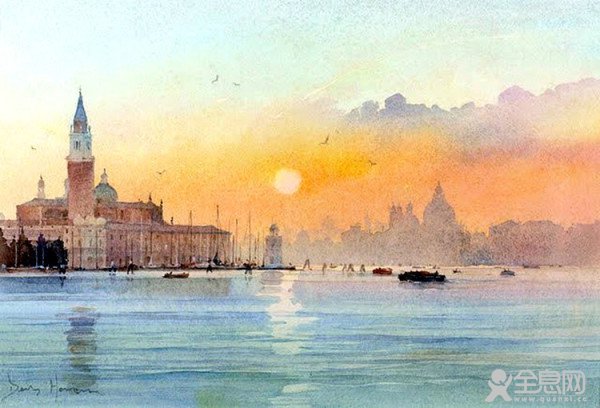 水分的运用和掌握是水彩技法的要点之一。水分在画面上有渗化、流动、蒸发的特性,画水彩要熟悉“水性”。充分发挥水的作用,是画好水彩画的重要因素。掌握水分应注意时间、空气的干湿度和画纸的吸水程度。