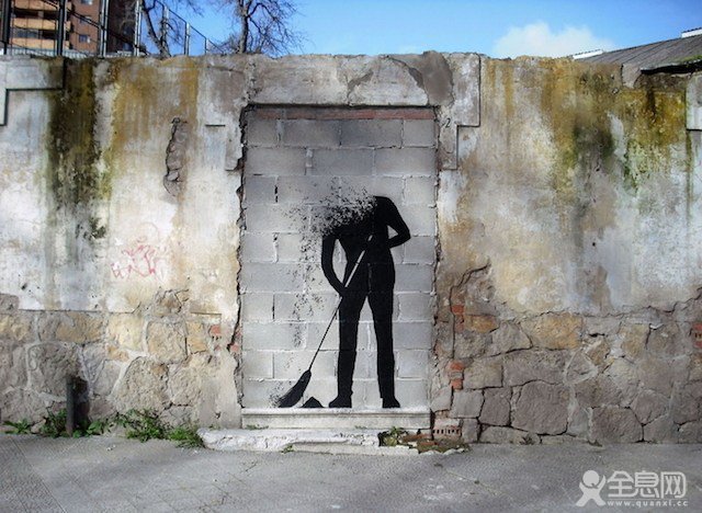 Pejac来自西班牙著名的街头涂鸦艺术家,他在大楼窗口上绘制的小图案,通过运用错视手法,然后利用其他大楼产生对应且幽默的互动场景;在人来人往的醒目街口、在生锈铁门或是剥落砖墙上,搭配幽默的笔调,巧妙地塑造了开放式的公共空间艺术,颠覆公共空间在日常生活中给人们的呆板印象。