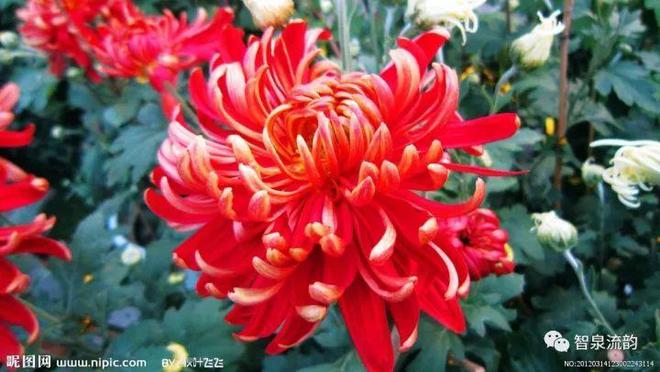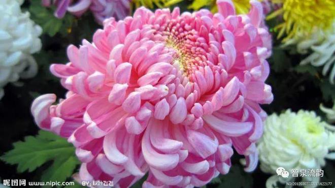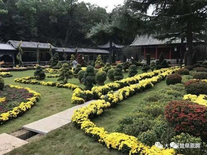 在通往风穴山的山口路旁,有一座刚刚修缮过的“夷园”,园前溪流潺潺,绿水悠悠,后边山上松青柏翠,鸟语花香。园内到处都是清雅高洁,缤纷烂漫的菊花,有的似彩带飞舞,纤细窈窕;有的似圆珠合抱,雍容大方;有的如龙爪挺伸,娇艳潇洒;有的似细丝散发,情态飘逸;还有的是圆盘平托,丰腴饱满……花色鲜艳、明朗,黄如金,黑如墨,白似璧玉,绿似翡翠,姿容端丽,美不胜收。“夷园”主殿,是一座富有民族特色的砖木结构朱色阁楼,蔚为壮观。仰瞻椽头梁栋的木雕装饰,凤头龙首,人物花鸟,体态多姿,逼真动人,造型之美,雕工之精,令人惊叹不已。进园门前行,“唐诗人刘希夷先生墓”的石碑首先映入眼帘。此时,那位俊美、聪慧的风流才子,仿佛揽衣推枕,飘然而出。愤世嫉俗的刘希夷,就像他墓冢周围那“宁可抱香枝上老,不随黄叶舞秋风”的菊花一样,把傲霜斗寒的铮铮骨气留给了人间。