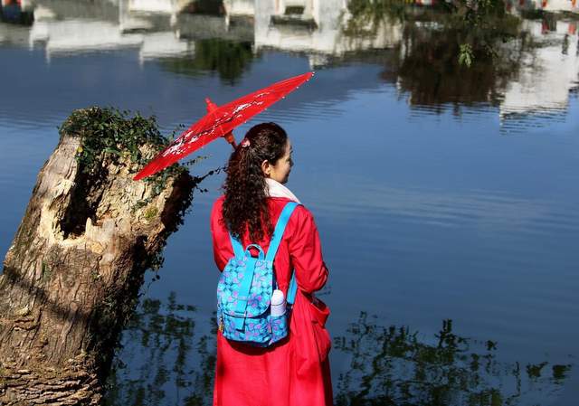我们千山万水风尘仆仆寻她而来,她依然轻柔地以一水之隔婉拒在面前,好似淡了红尘梦。静静地蛰居在时光深处,岁月的烟尘亦惊扰不了她。犹如佳人垂暮的张爱玲,栖息在大洋彼岸闭门息影,俨如隐士,而她的才华,引无数人为之倾倒。古老的宏村,依山傍水,四周山色与粉墙青瓦倒映湖中,古朴的马头墙,幽深的古巷,吸引无数人纷至而来,一心只为这神往已久的山水画卷般的村落。