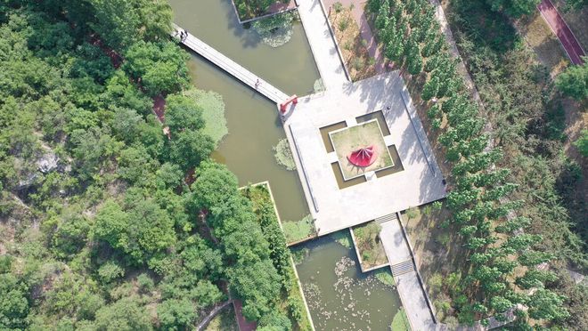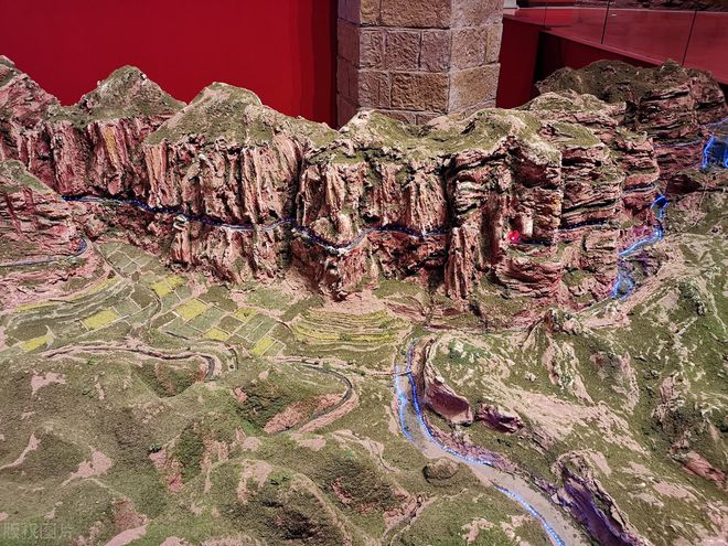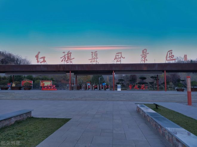 一座磅礴展馆映在了天河之旁——红旗渠纪念馆新馆,建于红旗渠一干渠外缓坡之上,为半地下建筑,整体形态犹如舞动的红色水渠,前段悬挑在一干渠之上,通过景观视窗可俯瞰整个分水苑景区,投资5000万元。