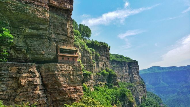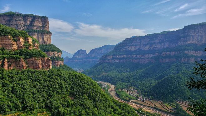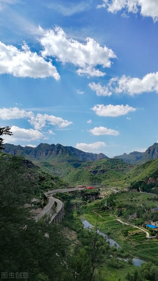 我们慕名拜访红旗渠的时候,只见人造天河绕山腰,碧波映蓝天。山山相连,像一本小说不再平铺直叙,主人公的命运扯出了悬念。渠蜿蜒,路蜿蜒,水与路紧紧揉在一起,像两根扭着劲的绳缠在山脚。渐渐看见山崖陡峭,山势崔巍,乔木、灌木用不同的颜色把山野浓妆艳抹。