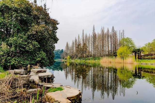 从环洲向东过菱桥可达菱洲,洲上有动物园。该洲紧临钟山,钟山宛如游龙,气势雄伟,山顶常有紫金色云霞缭绕,从菱洲观赏千变万化的紫金云霞,神秘莫测,故称“萎洲山岚”。