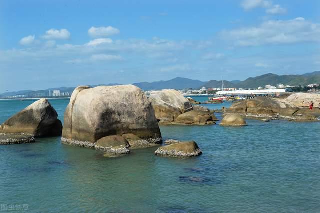 面对茫茫大海,椰林翠竹环抱沙滩,海边奇石林立,姿态万千。青山、椰林、奇石、碧海,构成了它的独特之美,特别是对我这个来自中原大地的“山里人”而言,突然来到海边,犹如置身于一个新的世界。