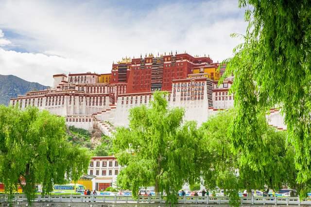 布达拉宫始建于公元7世纪,是藏王松赞干布为远嫁西藏的唐朝文成公主而建。布达拉宫占地约41公顷,建筑面积约13万平方米,主体建筑分为红宫和白宫,红宫居中,白宫横贯两翼。红宫有历代达赖喇嘛的灵塔和各类佛堂及经堂。白宫部分是达赖喇嘛处理政务和生活居住的地方。宫体主楼13层,高约115米,全部为石木结构,5座宫顶覆盖镏金铜瓦,金光灿烂,气势雄伟,由寝宫、佛殿、灵塔殿、僧舍等1000多间组成。